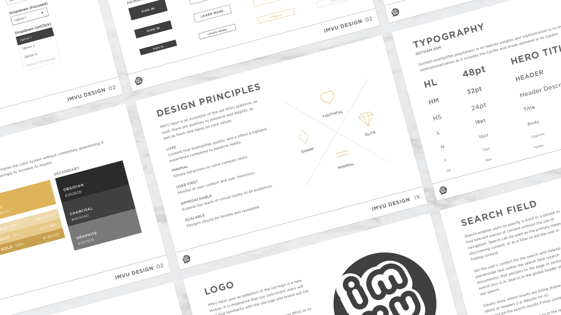 IMVU Design language ties the product and the brand together with a single design system, which includes typography, color, and UI components