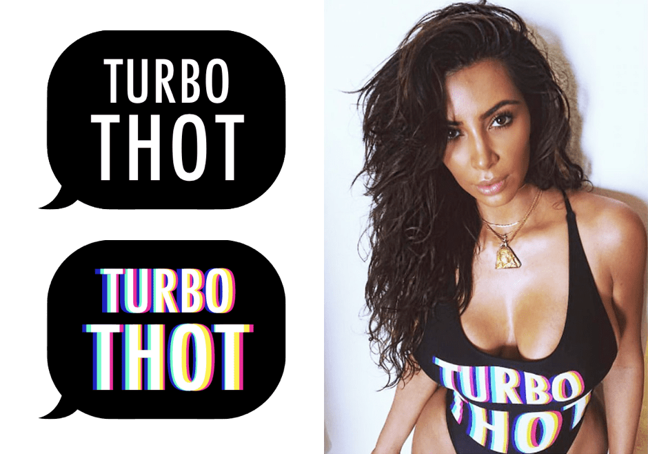 Original design (top) and my redesign (bottom); Kim Kardashian in a swimsuit inspired by the redesign (courtesy of Instagram)